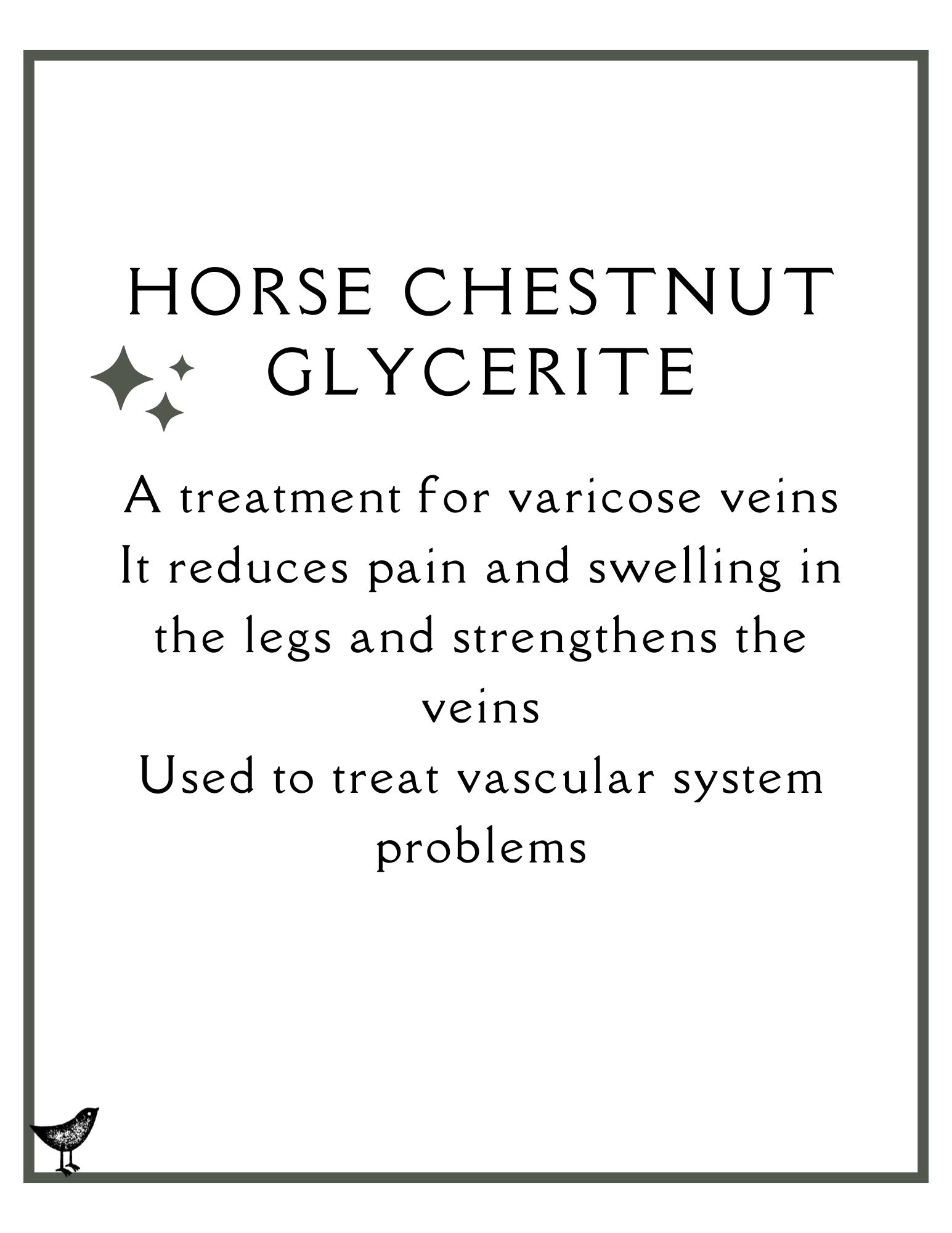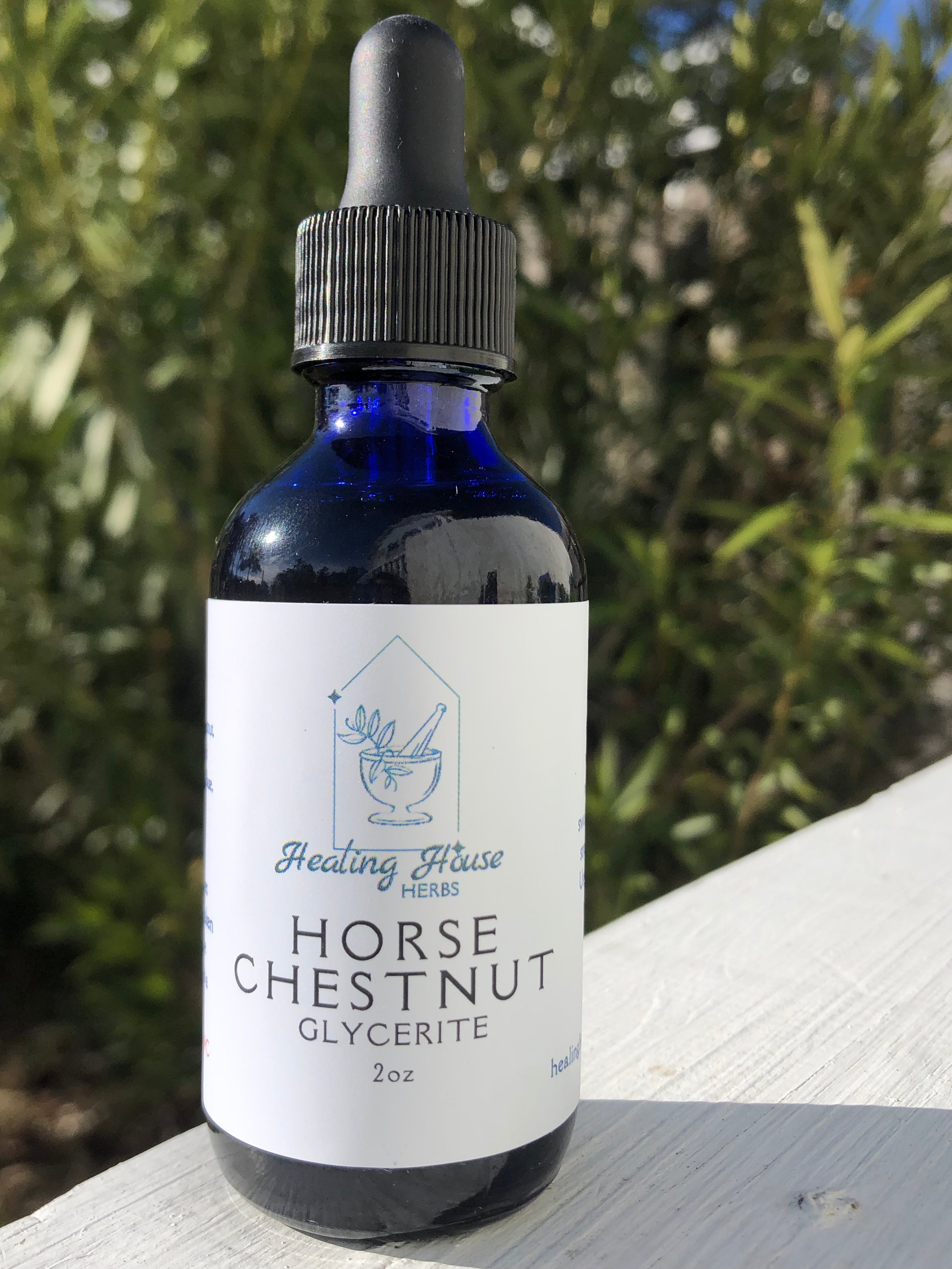 The Horse Chestnut essence is extracted by using an organic vegetable glycerin base. The process takes about 6+ weeks. Glycerin is gentle for children and adults. Sweet to the taste but still highly effective of pulling out the medicinal benefits of the plant!
