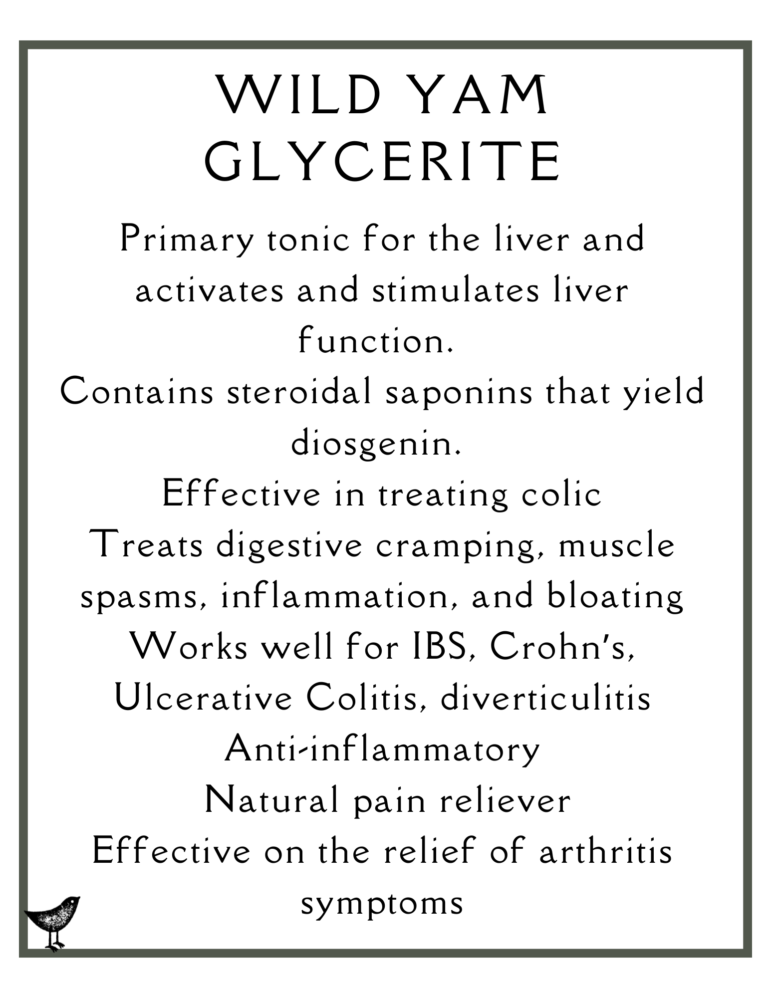 Ingredients: Organic Wild Yam Root, Coconut-Derived Vegetable Glycerin Base, Distilled Water